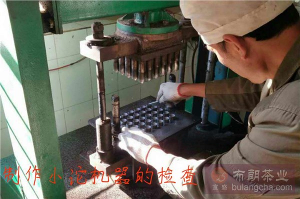 在制作小沱以前制作小沱的師傅會將機器先檢查一遍,然后放茶葉到機器里,通過壓制而形成小沱。